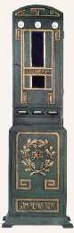 In der zweiten Abteilung kommen wir zu Schokoladenautomaten. Schon um 1905 gab es den "Gartmann" aus Hamburg-Altona. Noch älter ist die "Eierlegende Henne" aus dem Jahr 1896. Der "Imperator", gebaut um 1910, wurde in Berlin von der Firma Bischof & Spenler hergestellt!