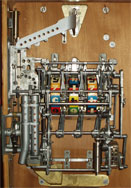 Das Bild oben zeigt das Innenleben eines Beromat B. Im Prinzip besteht die Technik aus vier Baugruppen: 1 - Münzprüfer mit Zuführungskanal; 2 - Maschine; 3 - (Münz-) Sortierer; 4 - Abzugmechanik. Alle Wulff-Banditen der nächsten Generationen haben die gleiche Grundmechanik. Neu sind nur einige Details für Verbesserungen und Erweiterungen für die Gewinnmöglichkeiten + Manipulationsschutz.