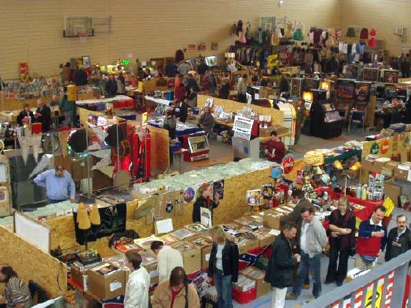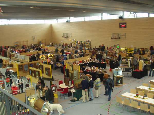 Am Osterwochenende fand in Crailsheim die vierte süddeutsche Musikboxen- und Automatenbörse statt. Im jährlichen Wechsel zwischen Crailsheim und Regensburg, war diesmal das "Schwabenländle" an der Reihe. Karl Hörner und seine "Mannschaft" stellten wieder eine Spitzen 50er Jahre Show auf die Beine, die den zahreichen Besuchern viel Spass bereitete. Entgegen den ersten beiden Veranstaltungen in der Jahnhalle, fand die Veranstaltung diesmal in der mehr als doppelt so grossen Hirtenwiesenhalle statt, die erst vor kurzem neu gebaut wurde. Wer daran gezweifelt hatte, dass sich diese grosse Halle nicht füllen liesse, sah sich schnell eines Besseren belehrt! Denn ca. 45 Händler hatten für die Besucher ein reichhaltiges Angebot zum Kauf bereitgestellt. Von alten und neueren Musikboxen, über zahlreiche Automaten aller Art, gab es auch einige Flipper, 50er Jahre Kleidung, Emailleschilder, Schallplatten in Hülle und Fülle, 50er Jahre Artikel u.v.m. Im Aussengelände waren auch wieder einige schöne Oldtimer zu bestaunen. Wer wollte, konnte sich von einer Frisörin gekonnte 50er und 60er Jahre Frisuren verpassen lassen. Deutschland´s Automatensammler No.1 Gernot Königer hatte wieder einige seiner herrlichen nostalgischen Automaten mitgebracht, unter anderem ein besonderes Prunkstück (siehe Bilder weiter unten). Auch für musikalische Unterhaltung war gesorgt. Tom Aaron begeisterte die Zuschauer mit Songs im Sound von Elvis und manch einer legte ein kleines Tänzchen auf´s Parkett. Auch eine Rock´n Roll Gruppe sorgte für beste Unterhaltung. Ebenfalls sehr gelungen: das abendliche Treffen der Händler im Gastronomiebereich. Um Euch einen kleinen Eindruck der Veranstaltung zu vermitteln, schaut Euch bitte die nachfolgenden Bilder an. Vielen herzlichen Dank lieber Karl an Dich und Deine Helfer für diese schöne Veranstaltung!!